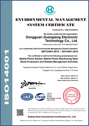 ENVIRONMENTAL MANAGEMENT SYSETM CERTIFICATE